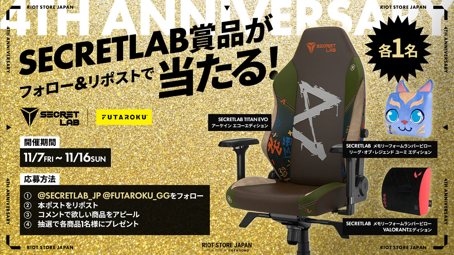Riot Store Japanの4周年を記念して、ゲーミングチェアブランドSecretlabとのコラボキャンペーンを実施!