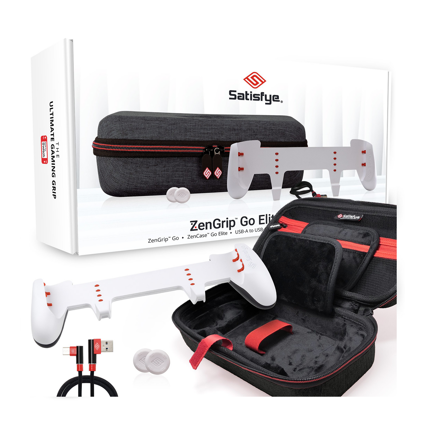 商品内容:ZenGrip Go(Nintendo Switch Lite専用グリップケース)、専用持ち運びケース、USB-A to USB-C 充電ケーブル(0.91m)、スティックキャップ×2